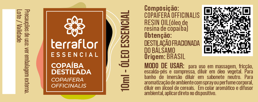 Para estimular o efeito rejuvenescedor da pele adicionar 4 gotas de óleo essencial de Copaíba Destilada em 30ml de óleo vegetal de Rosa Mosqueta Orgânico Terra Flor ou no creme neutro de sua preferência. Aplicar à noite no rosto limpo e umedecido com hidrolato de Alecrim. UFUso facial (UF)