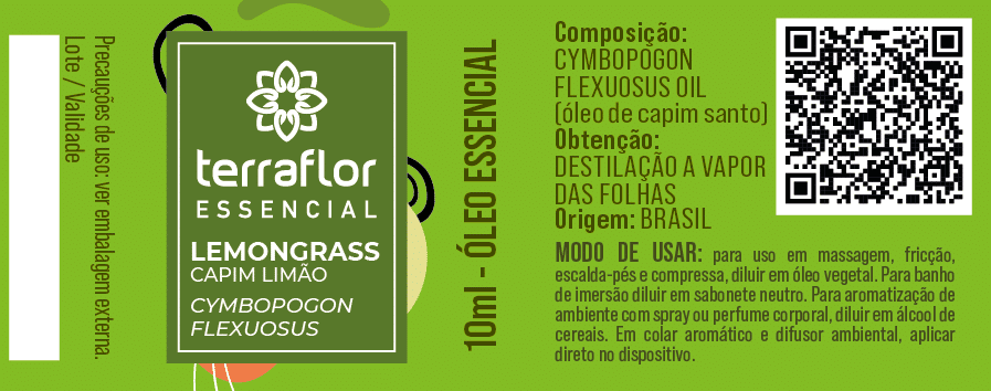Para os cuidados de pele: adicionar 4 gotas de óleo essencial de Lemongrass em 30ml óleo vegetal de Jojoba Orgânico Terra Flor. Aplicar a quantidade necessária na área afetada. Observe a sua sensibilidade, pois este óleo essencial contém moléculas dermoagressivas. MMassagem (M)