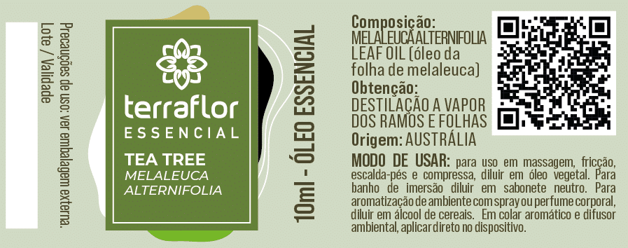 Favorece a manutenção das defesas naturais e da circulação saudável. Adicionar 5 gotas de óleo essencial de Tea Tree em 10ml de óleo vegetal de Algodão Orgânico Terra Flor e friccionar o peito e as costas. CCompressa local com água ou argila (C)