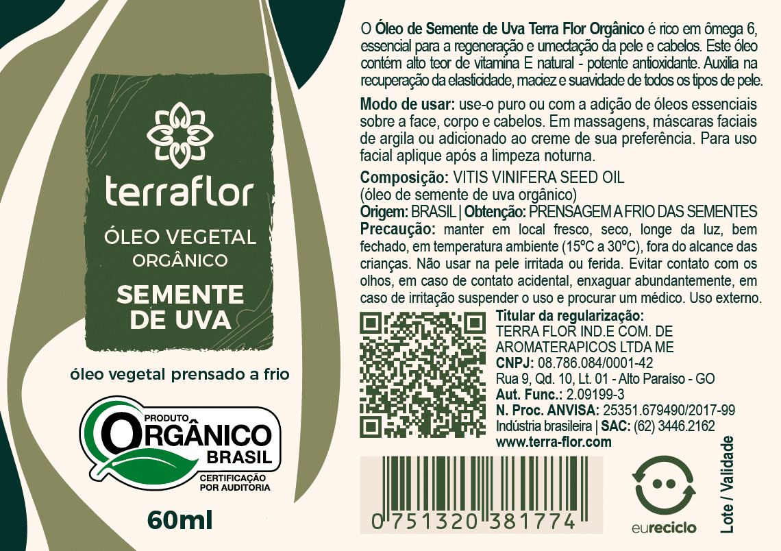 O Óleo de Semente de Uva Orgânico Terra Flor é um aliado indispensável nos seus cuidados diários. Experimente e garanta uma experiência revitalizante!